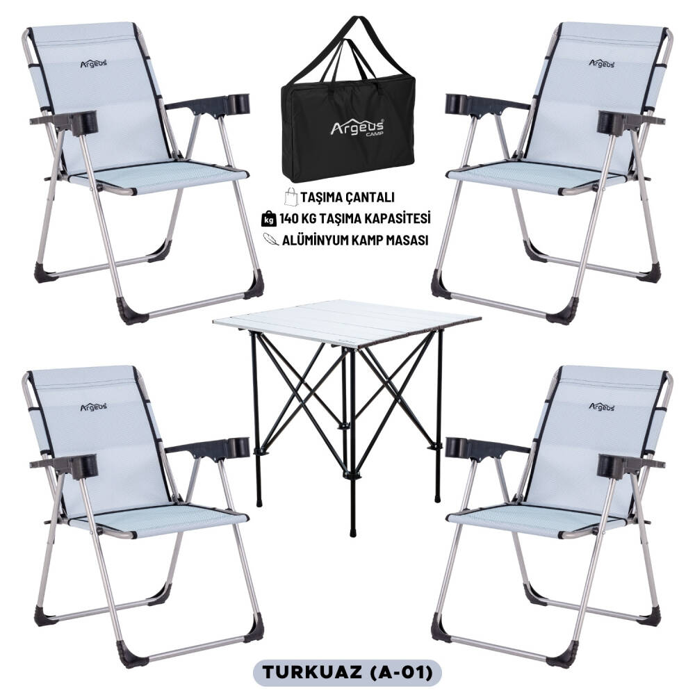 4 Adet Katlanır Kamp Sandalyesi ve Alüminyum Masa Seti - Rock Silver - Turkuaz