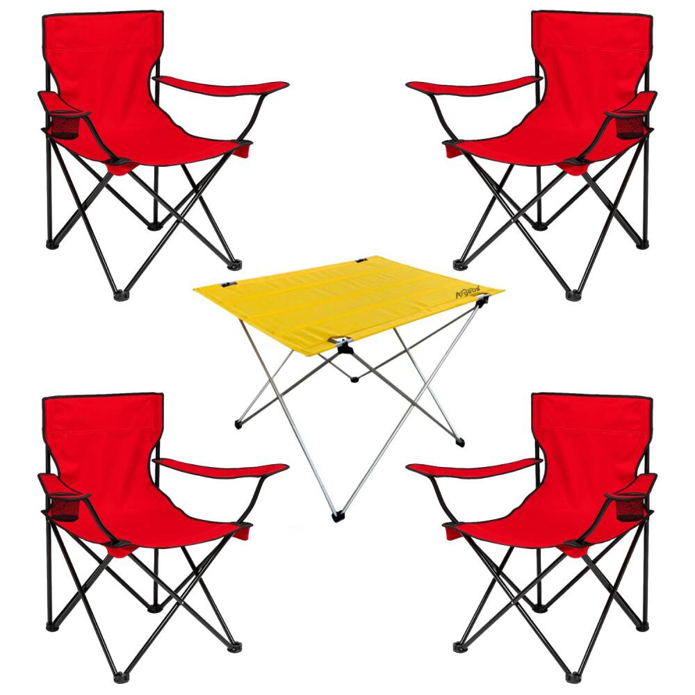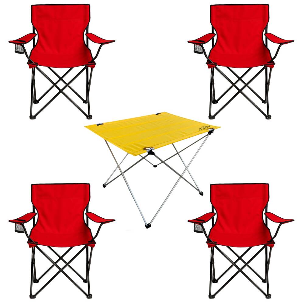 4 Adet Katlanır Kamp Sandalyesi ve Masa Seti - (DY.001) - Kırmızı/Sarı