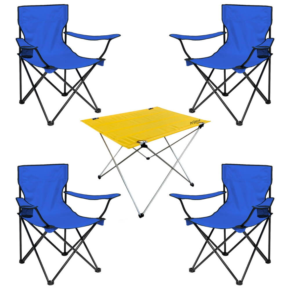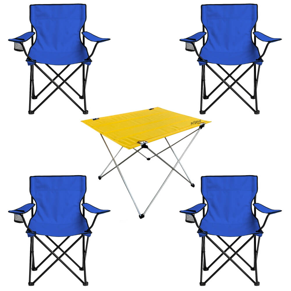 4 Adet Katlanır Kamp Sandalyesi ve Masa Seti - (DY.001) - Mavi/Sarı