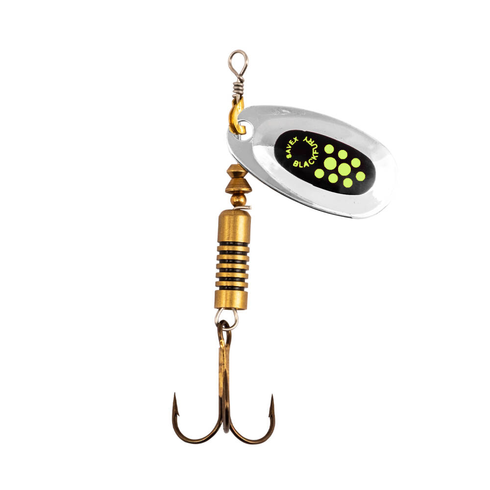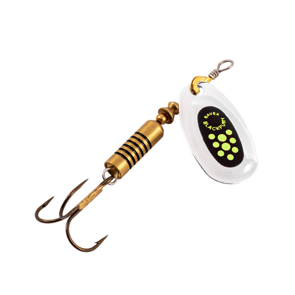 Alabalık ve turna avı için ideal, yüksek kaliteli Black Fury döner olta kaşık. Fluo sarı/gümüş renkleri ve dayanıklı yapısıyla avlarınızı daha verimli hale getirin.