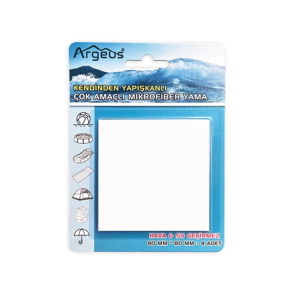 Argeus 4'lü Yapışkanlı Fiber Çadır Tamir Yaması Beyaz ile çadırlarınızı, montlarınızı, şemsiyelerinizi ve şişme yataklarınızı hızlıca onarın. Hava ve su geçirmez özelliği sayesinde uzun ömürlü kullanım sağlar.
