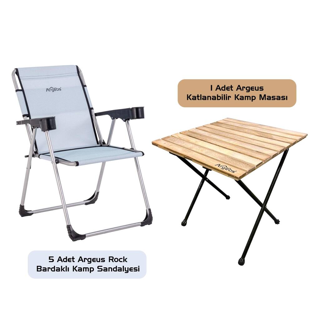 5 Adet - Argeus Rock Katlanabilir Kamp Sandalyesi Bardaklı
