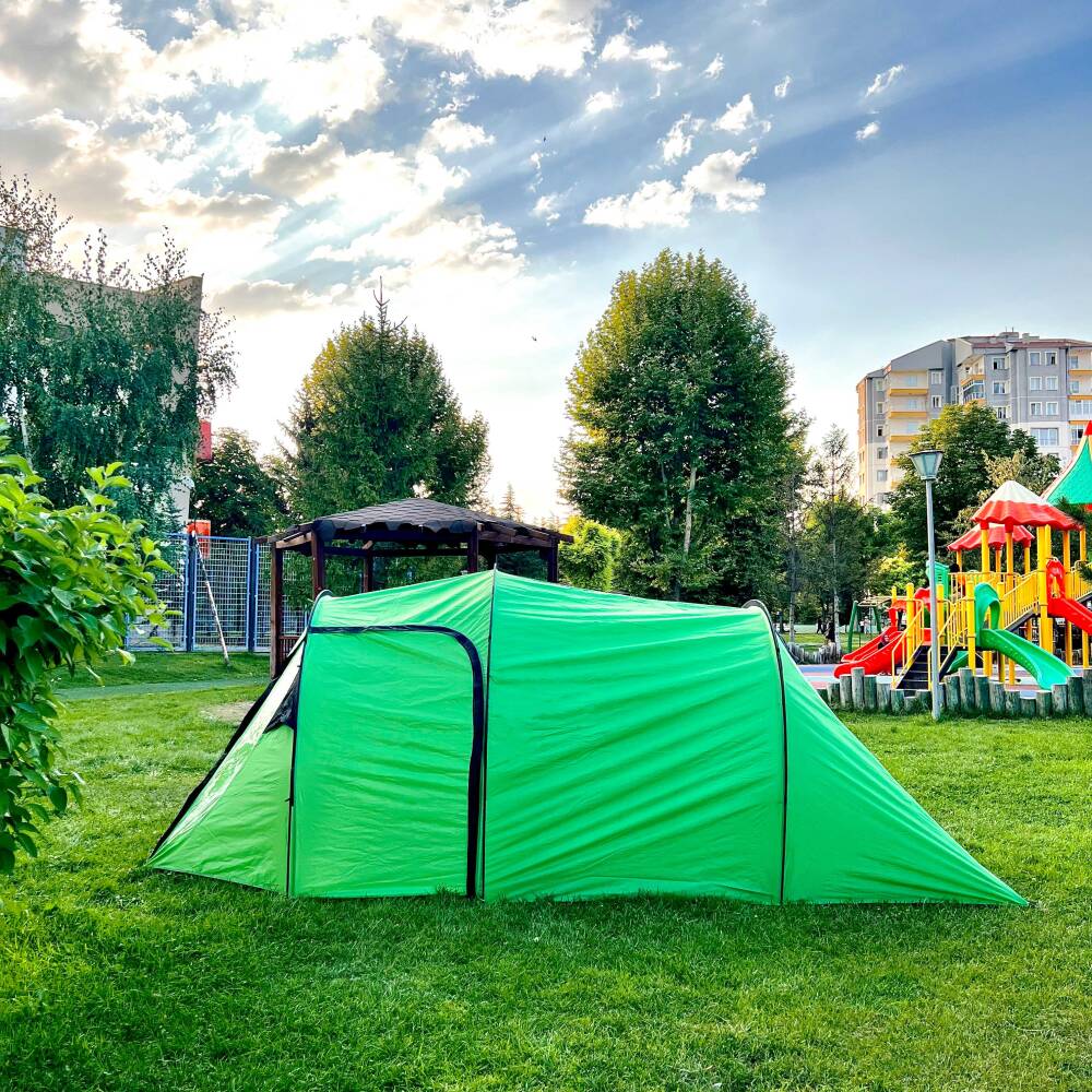 Çadırımızın bir adet mutfak ve yatak odası bulunmaktadır. Bu sayede ailenizle birlikte ev konforunda kamp yapabilirsiniz.