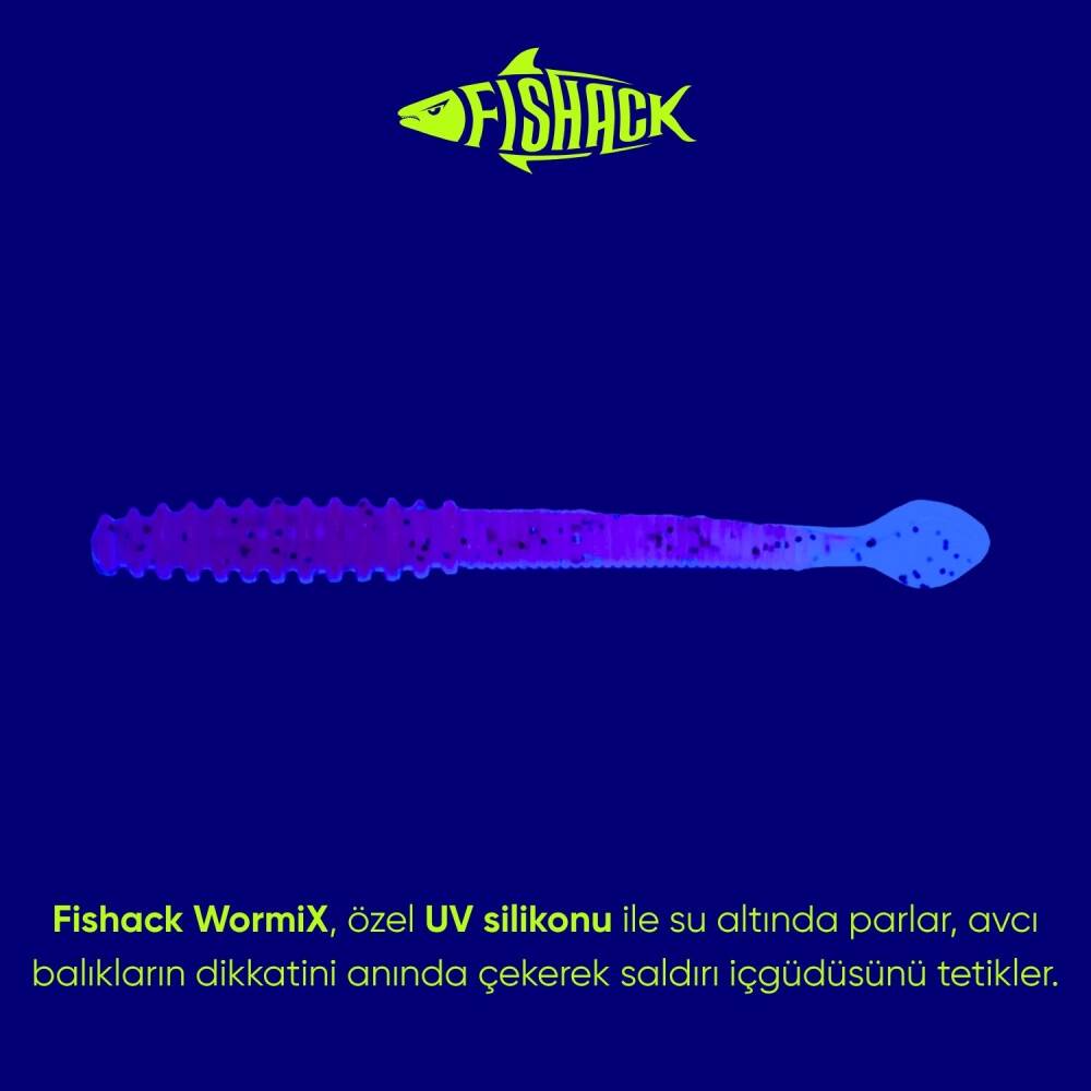Fishack Wormix UV silikon kurt yemi ile balık avında fark yaratın. Karides kokusu, UV aktif malzeme ve doğal hareket ile avcı balıkları cezbedin. 2,2g ağırlık, 87mm uzunluk ve mor renk.