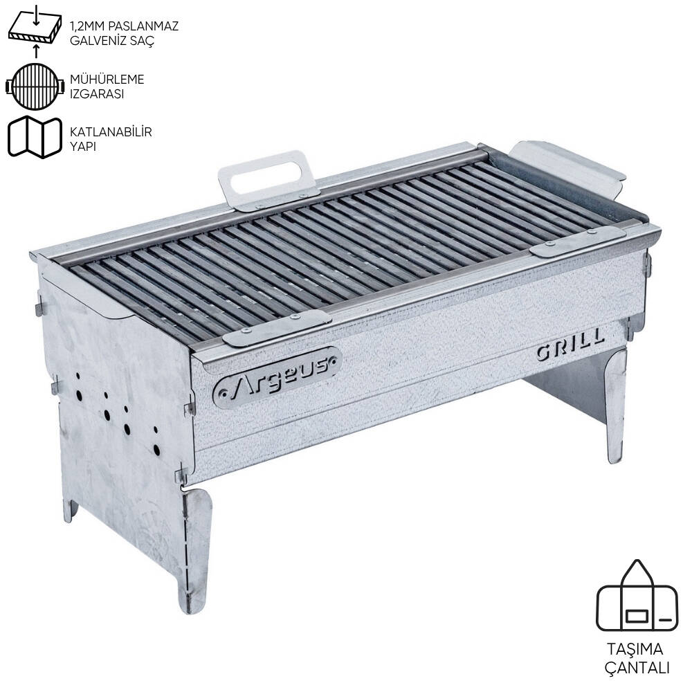 Katlanabilir Ayaklı Mangal - Paslanmaz - Argeus - Taşıma Çantalı - Büyük