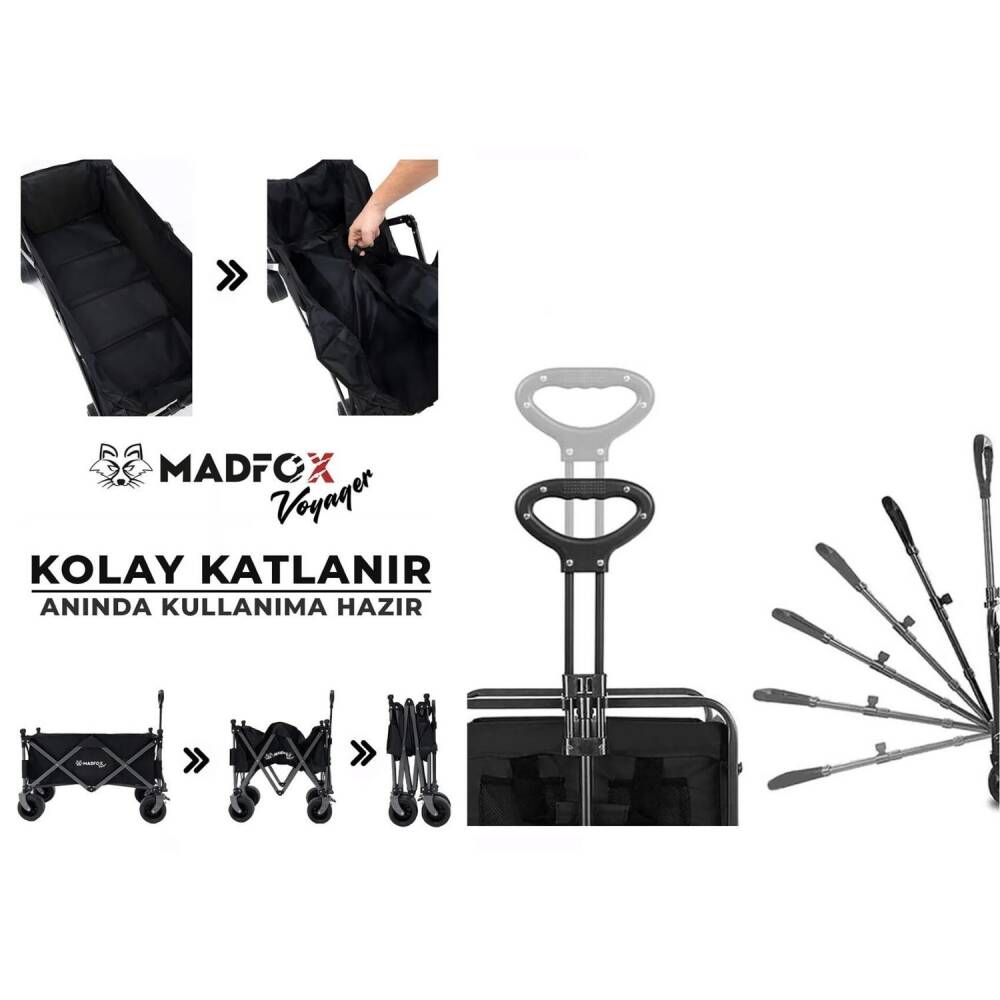 Kamp alanı ve piknik gibi ortamlarda yapılan kullanımlarda, Madfox Voyager Katlanabilir Plaj/Bahçe/Kamp Arabası - Siyah pratik kurulumu ve günlük kullanım konforuyla kullanıcıların memnuniyetini artıran ekipmanlardan biri olarak öne çıkmaktadır.