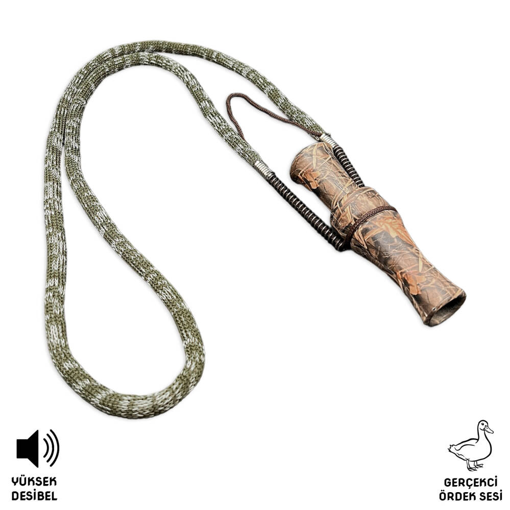 Boyun askısı sayesinde av etkinliklerinizde ördek düdüğünü rahat bir şekilde taşıyabilir ve kullanabilirsiniz. İstenildiği takdirde askılığa iki adet ördek düdüğü asılabilir.