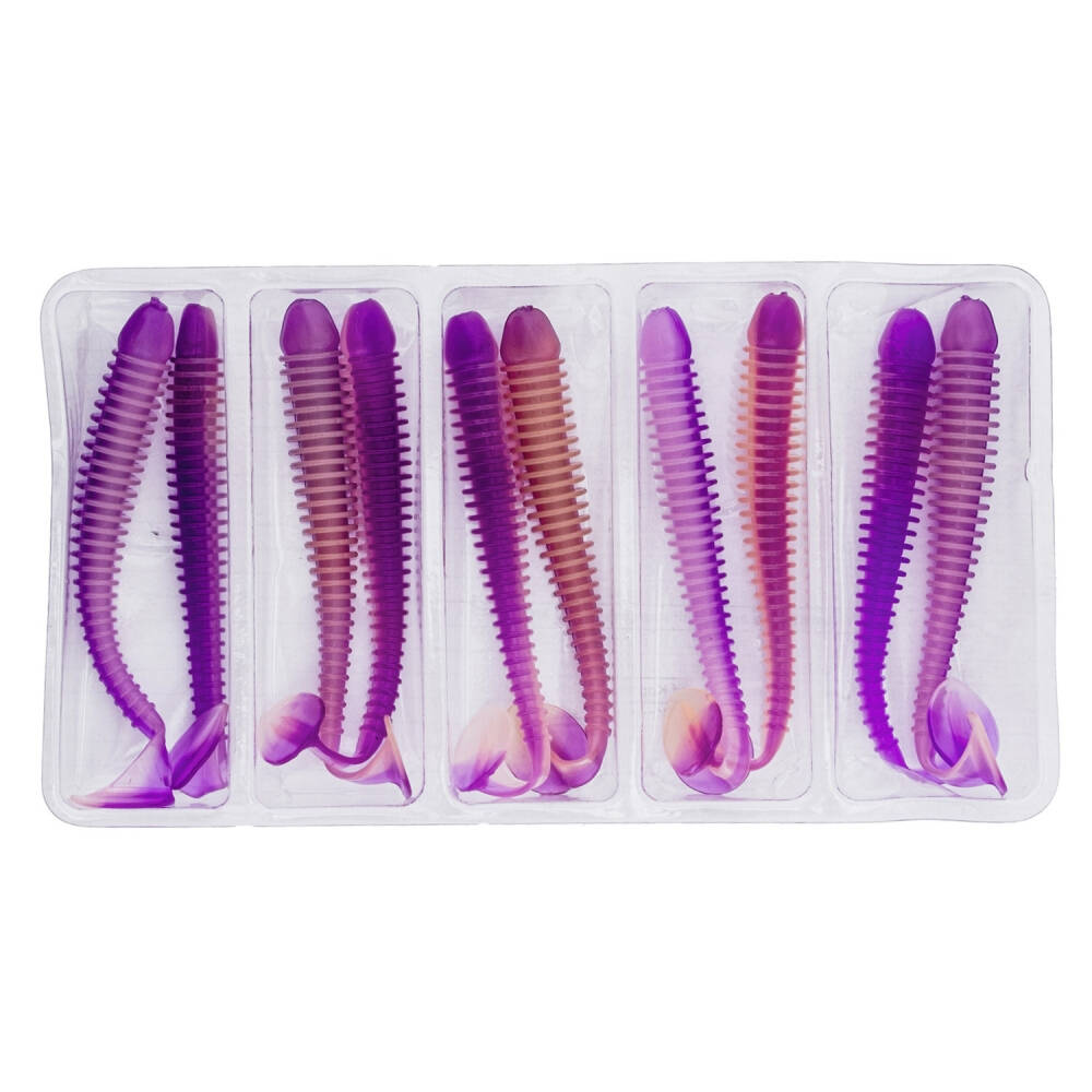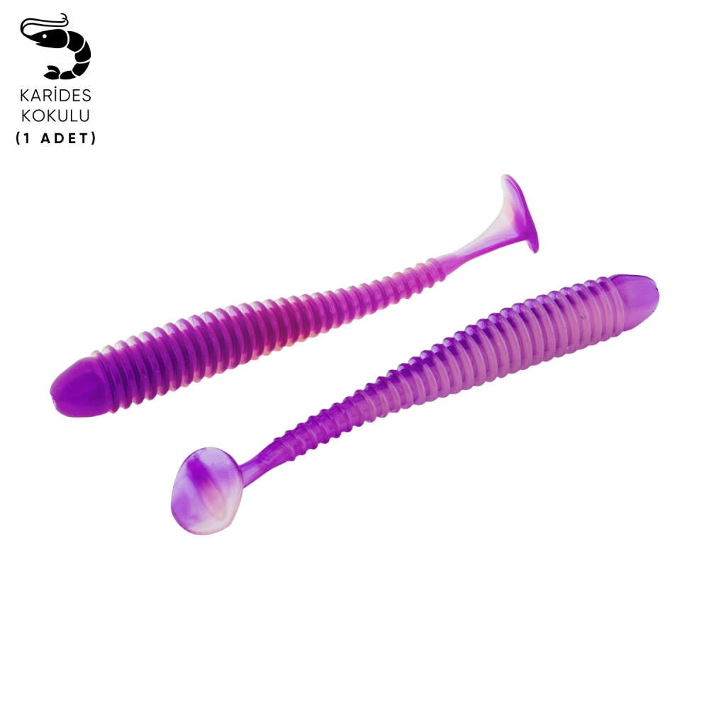 Balık avında yüksek performans için tasarlanmış, karides kokulu, mor/beyaz silikon kurt yem. Turna ve levrek avı için ideal. 105mm uzunluğunda ve 4,2g ağırlığında.
